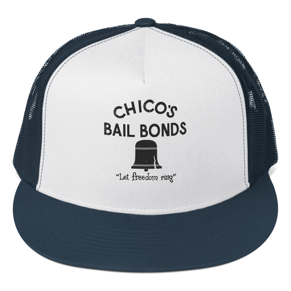 Chico's Bail Bonds lets freedom ring! They also sponsor a winning little league team. • 47% cotton, 28% nylon, 25% polyester• Structured, five-panel, high profile• Flat bill• Snapback closure• Head circumference: 21⅝″–23⅝″ (53.3 cm–60 cm) Size guide   A (inches) B (inches) C (inches) D (inches) One size 20 ½-⅝ 4 ½ 2 ⅝ 7 ½