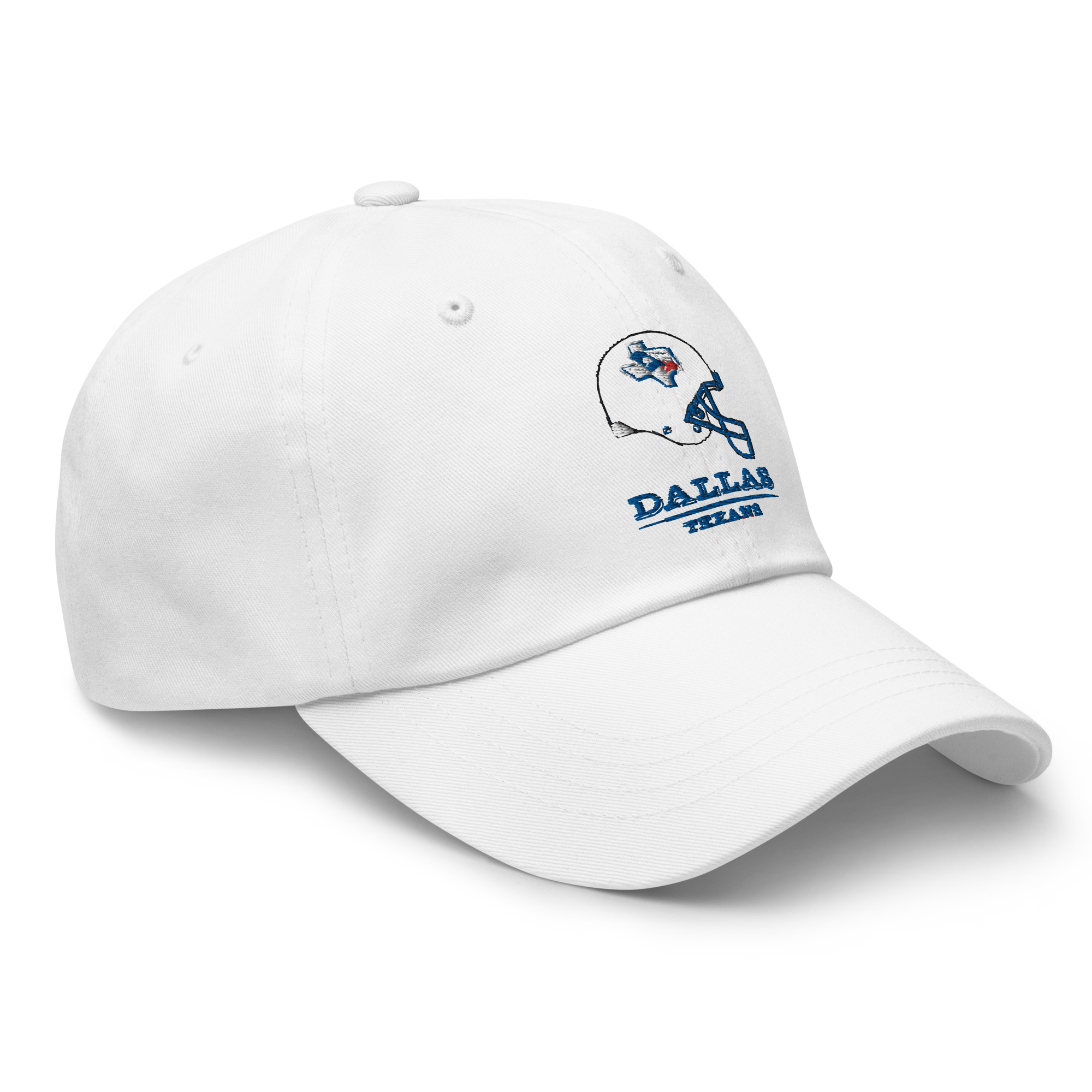 The Dallas Texans played in the Arena Football League from 1990 to 1993. After failing to meet league financial obligations, they folded. Indoor football returned to the area in 2002 in the form of the Desperados, who played until 2008. The Dallas Texans was also the name of an NFL team that played one year in the city (1952). It was also the name used by a team that eventually moved to Kansas City.• 100% chino cotton twill• Green Camo color is 35% chino cotton twill, 65% polyester• Unstructured, 6-panel, low-profile• 6 embroidered eyelets• 3 ⅛” (7.6 cm) crown• Adjustable strap with antique buckle