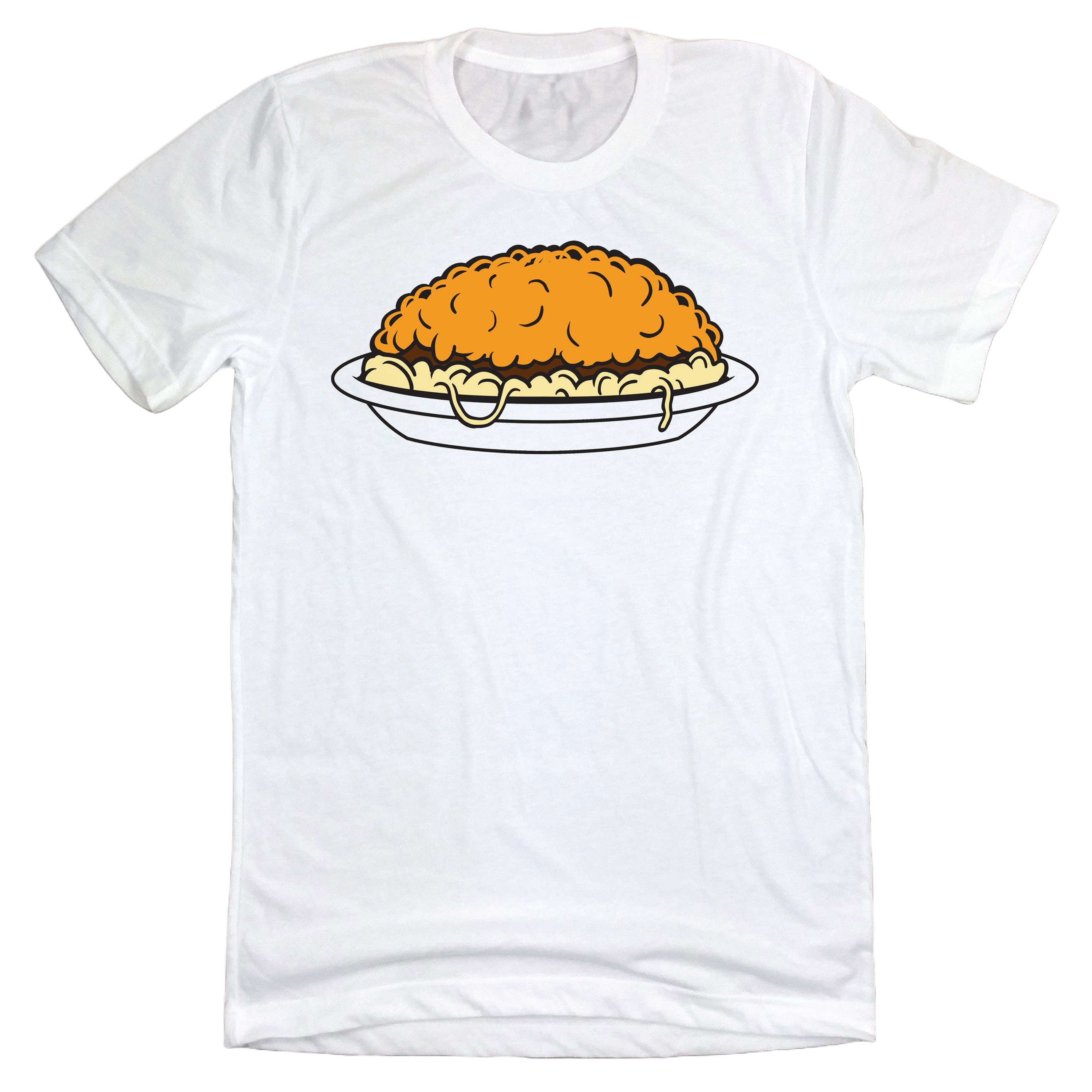 Cincinnatians love their chili and this shirt represents the classic Cincinnati-style 3-way chili spaghetti in a whimsical cartoon design.