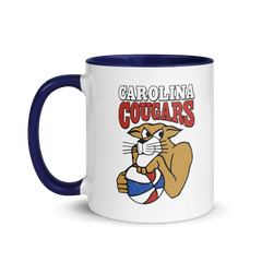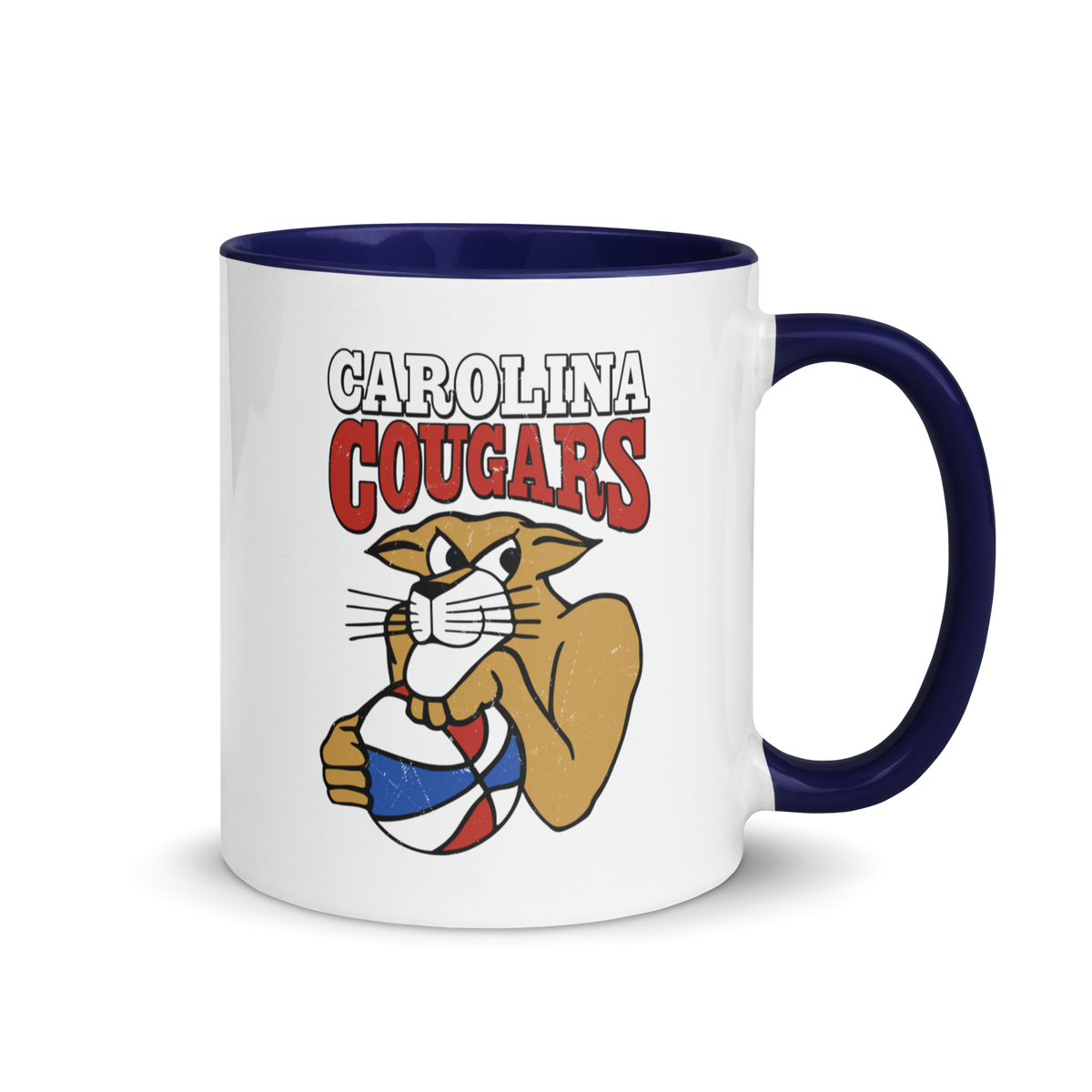 The Carolina Cougars began as the Houston Mavericks, charter members of the American Basketball Association (ABA) in 1967. The club relocated to North Carolina in 1969, splitting home games between Charlotte, Raleigh, and Greensboro. The latter is where they played most of their games and had their offices. In advance of a possible merger with the NBA, the team was moved in 1974 and became the Spirits of St. Louis.  • Ceramic• 11 oz mug dimensions: 3.79″ (9.6 cm) in height, 3.25″ (8.3 cm) in diameter• 15 oz mug dimensions: 4.69″ (11.9 cm) in height, 3.35″ (8.5 cm) in diameter• Colored rim, inside, and handle• Dishwasher and microwave safe