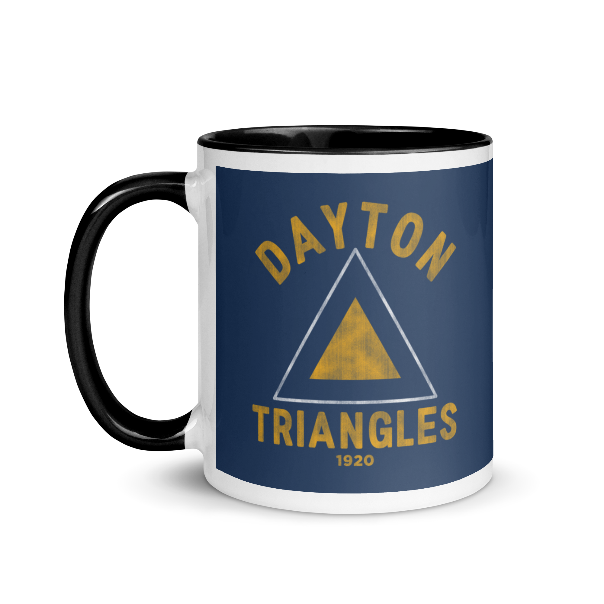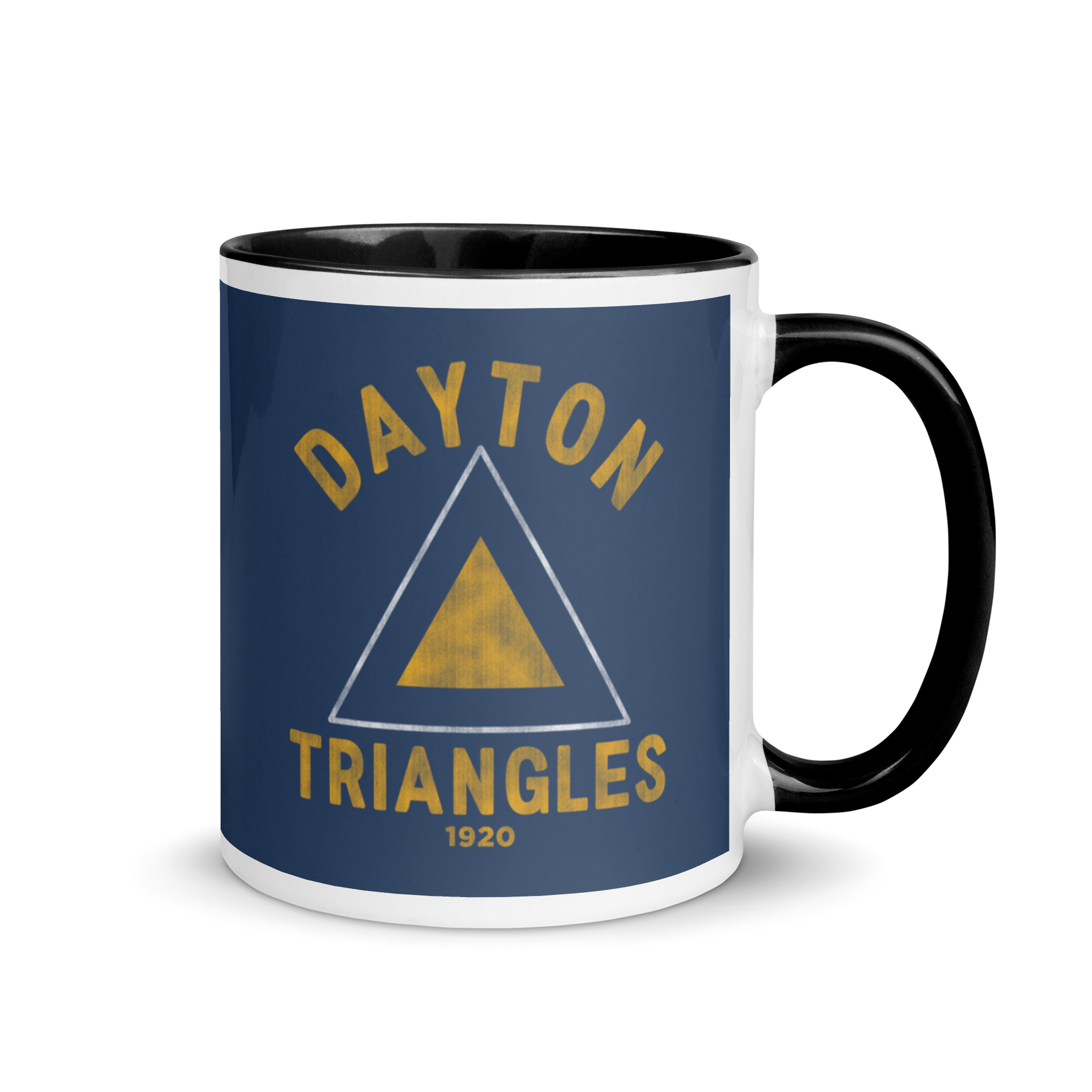 In 1920, the Dayton Triangles were founding members of the American Professional Football Association (APFA). The team played in the very first game between two league teams when they met the Columbus Panhandles on October 3, 1920 in Dayton's Triangle Park. They played their home games on that field until 1929 when they moved to Brooklyn, NY to become the Dodgers (later called the Tigers).  • Ceramic• 11 oz mug dimensions: 3.79″ (9.6 cm) in height, 3.25″ (8.3 cm) in diameter• 15 oz mug dimensions: 4.69″ (11.9 cm) in height, 3.35″ (8.5 cm) in diameter• Colored rim, inside, and handle• Dishwasher and microwave safe