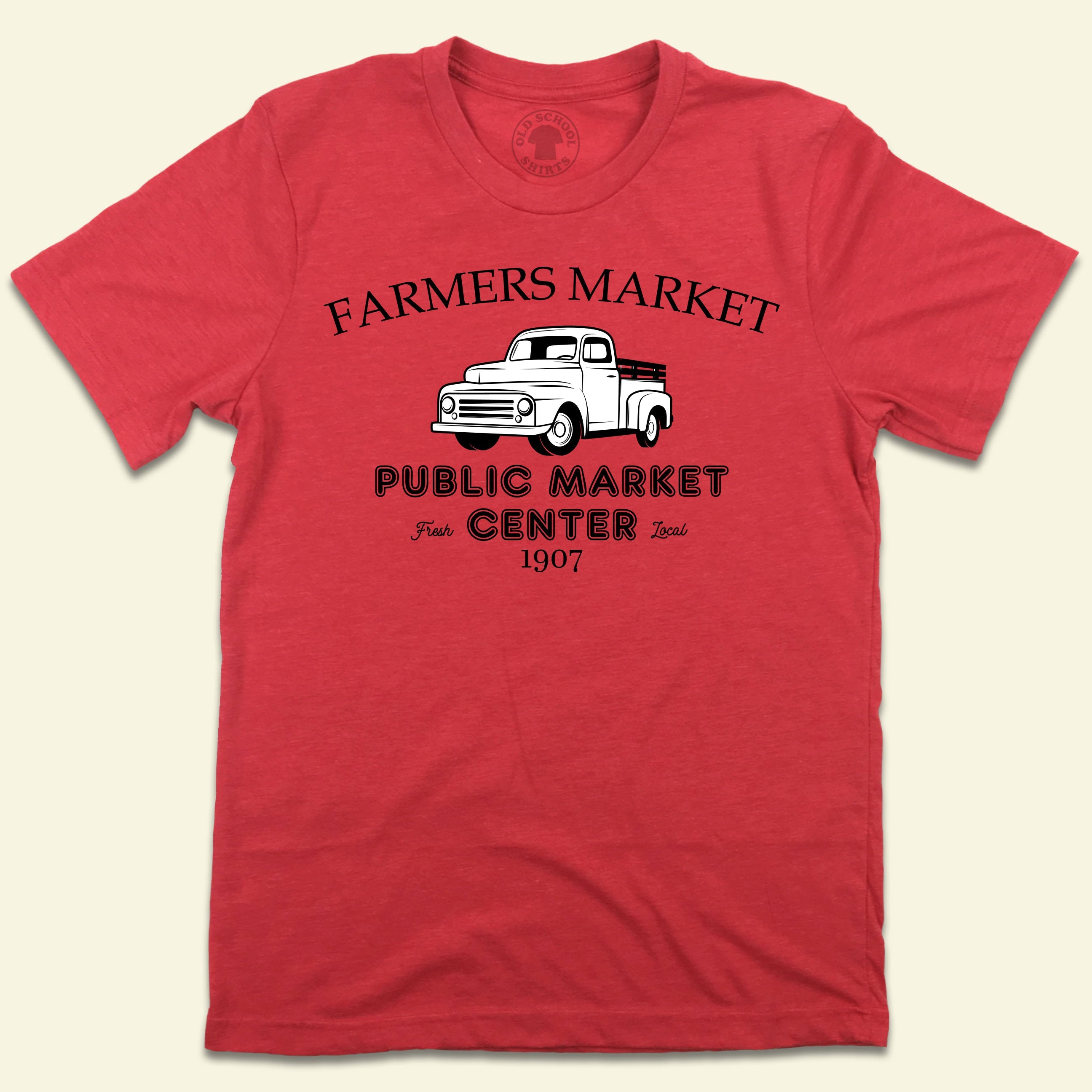 The world famous Pike Place Market overlooks the Elliott Bay waterfront in Seattle. It opened in 1907 and is one of the oldest continuously operated public farmers' markets in the United States.