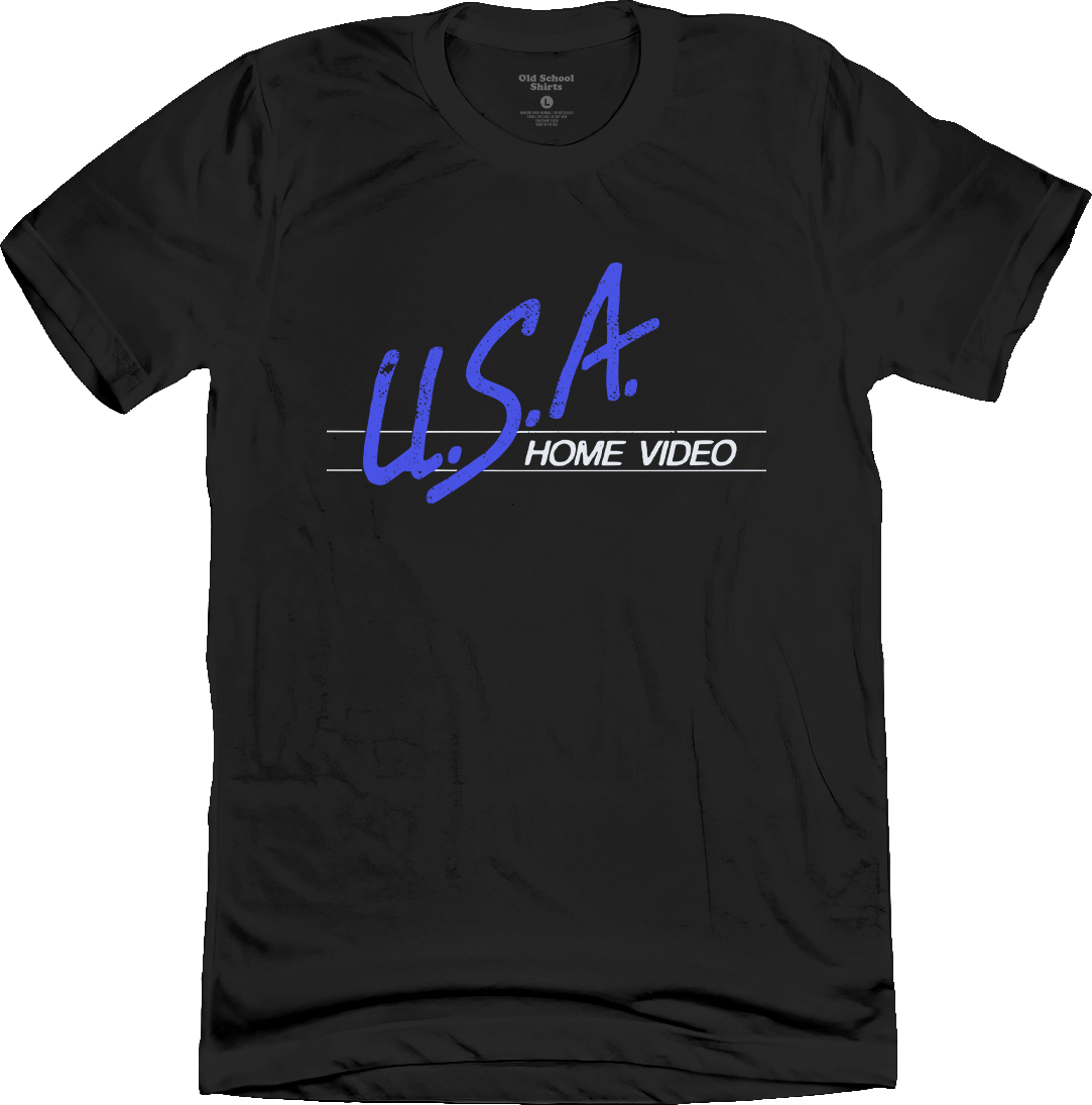 Be Kind, Rewind. Step back into the golden age of the video rental store. This premium tee features the iconic U.S.A. Home Video logo—the label responsible for bringing some of the wildest action, horror, and cult classics to your living room in the 80s. Whether you’re a physical media collector or just love that grainy, analog aesthetic, this shirt is a total mood.